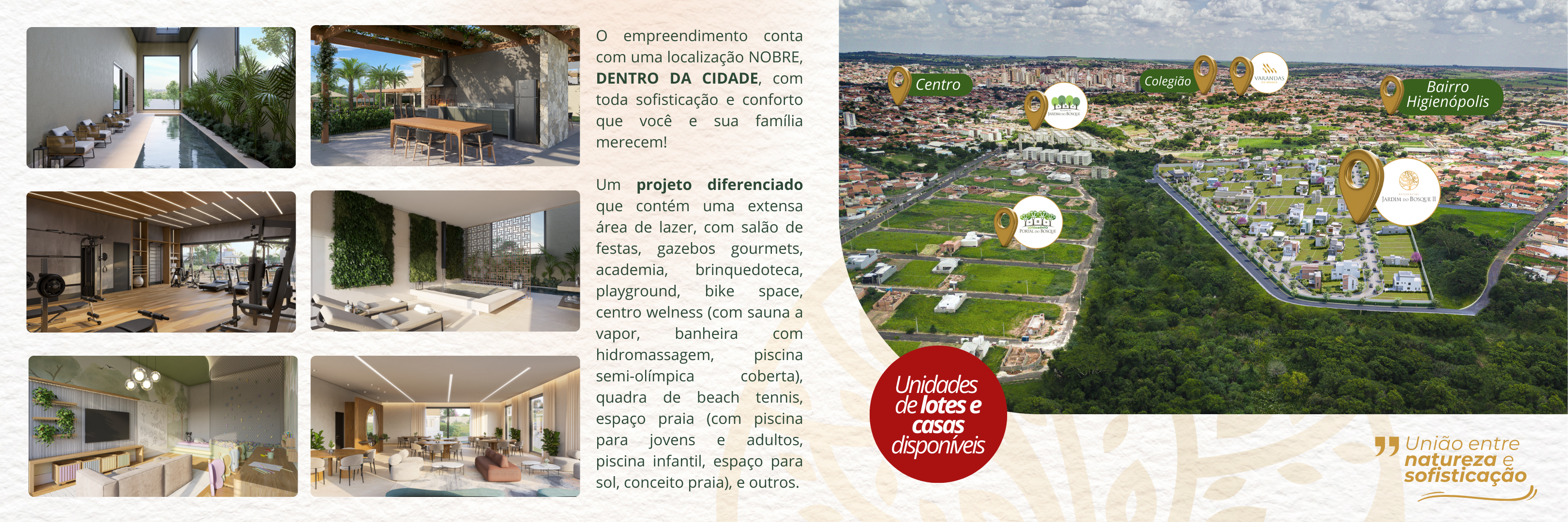 São projetos pensados para proporcionar bem-estar, qualidade de vida e a verdadeira experiência de morar em um condomínio completo e diferenciado.