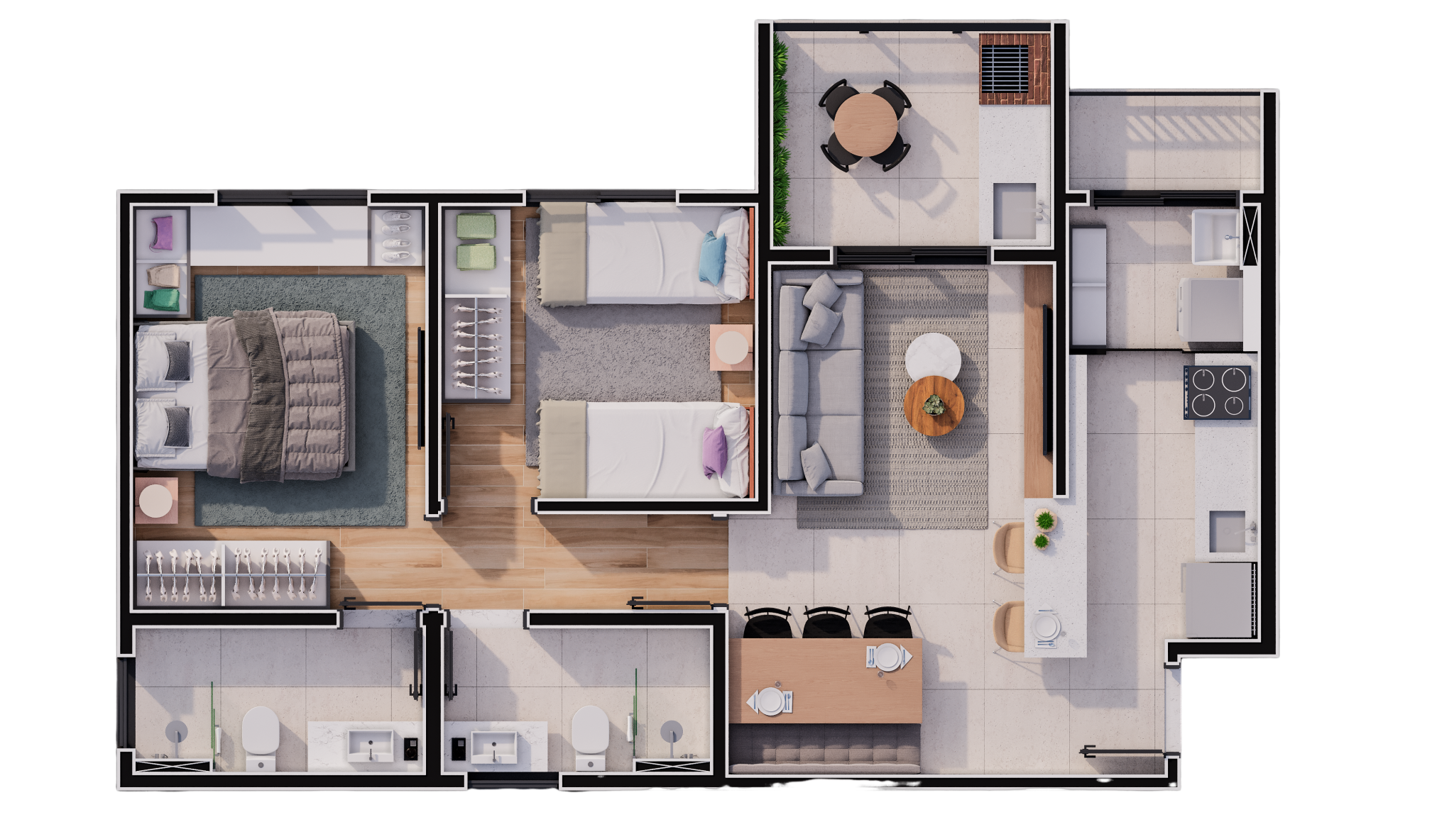 APARTAMENTOS COM SUÍTE E SACADA COM CHURRASQUEIRA